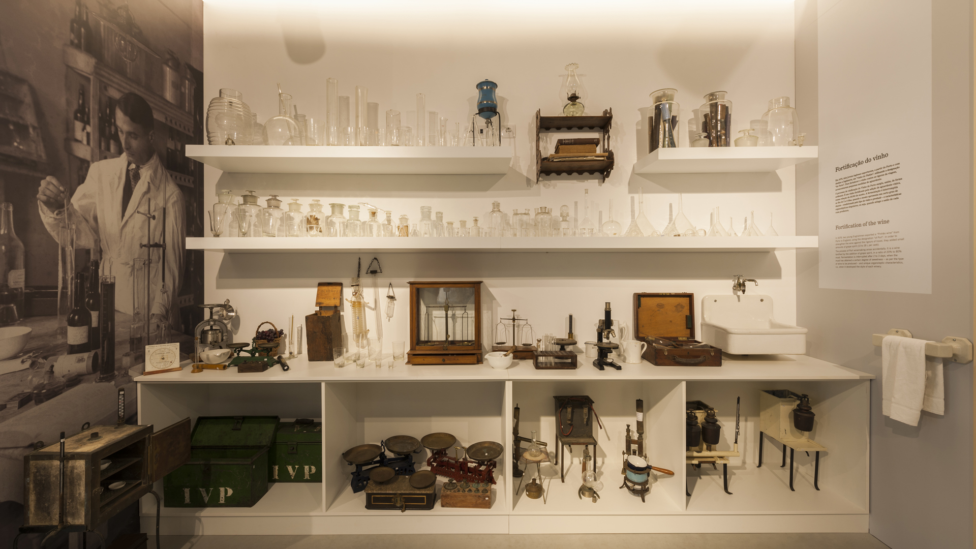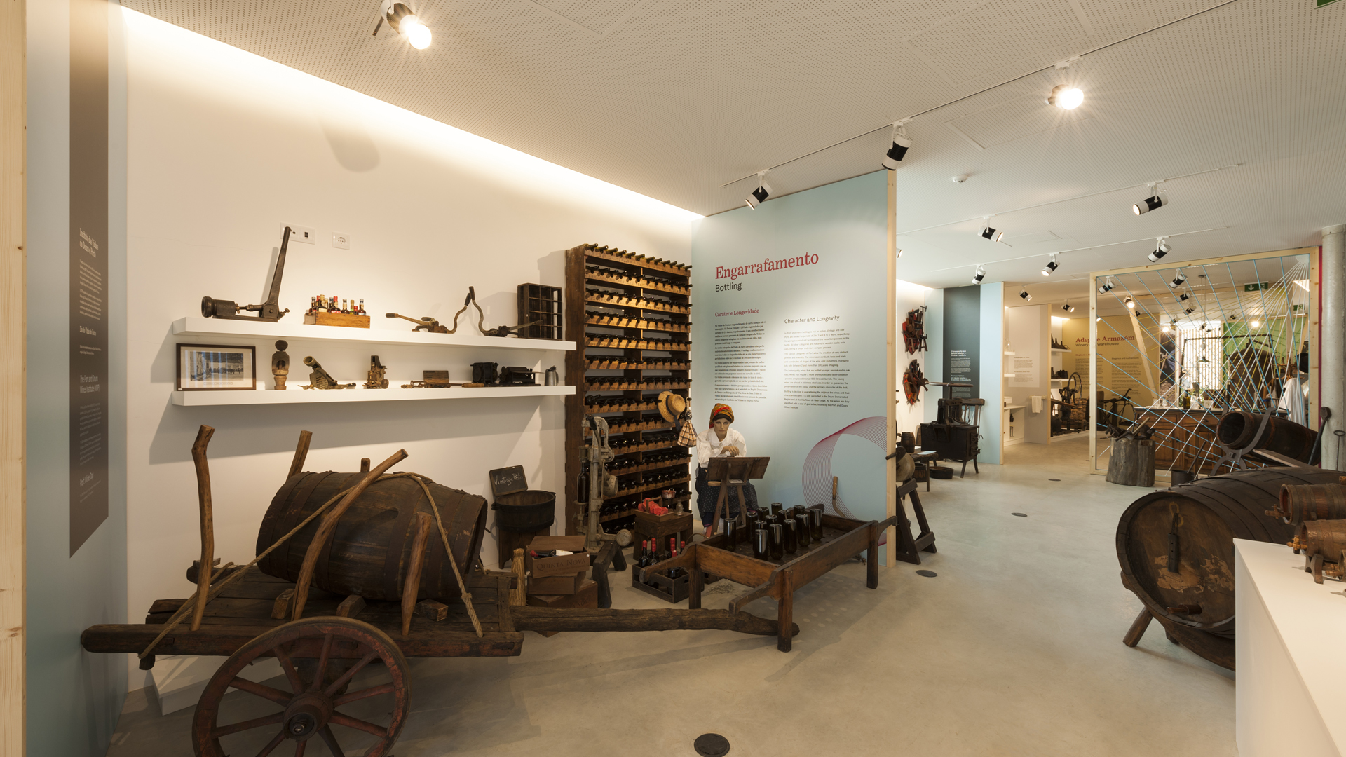 The exhibition space is divided into eight thematic areas ranging from Viticulture, the Winery, the Lab and Tasting Room, the Cooperage, Bottling and Port Wine production and the 250 years of History of Quinta Nova. Each area incorporates various representative objects through different museum resources.